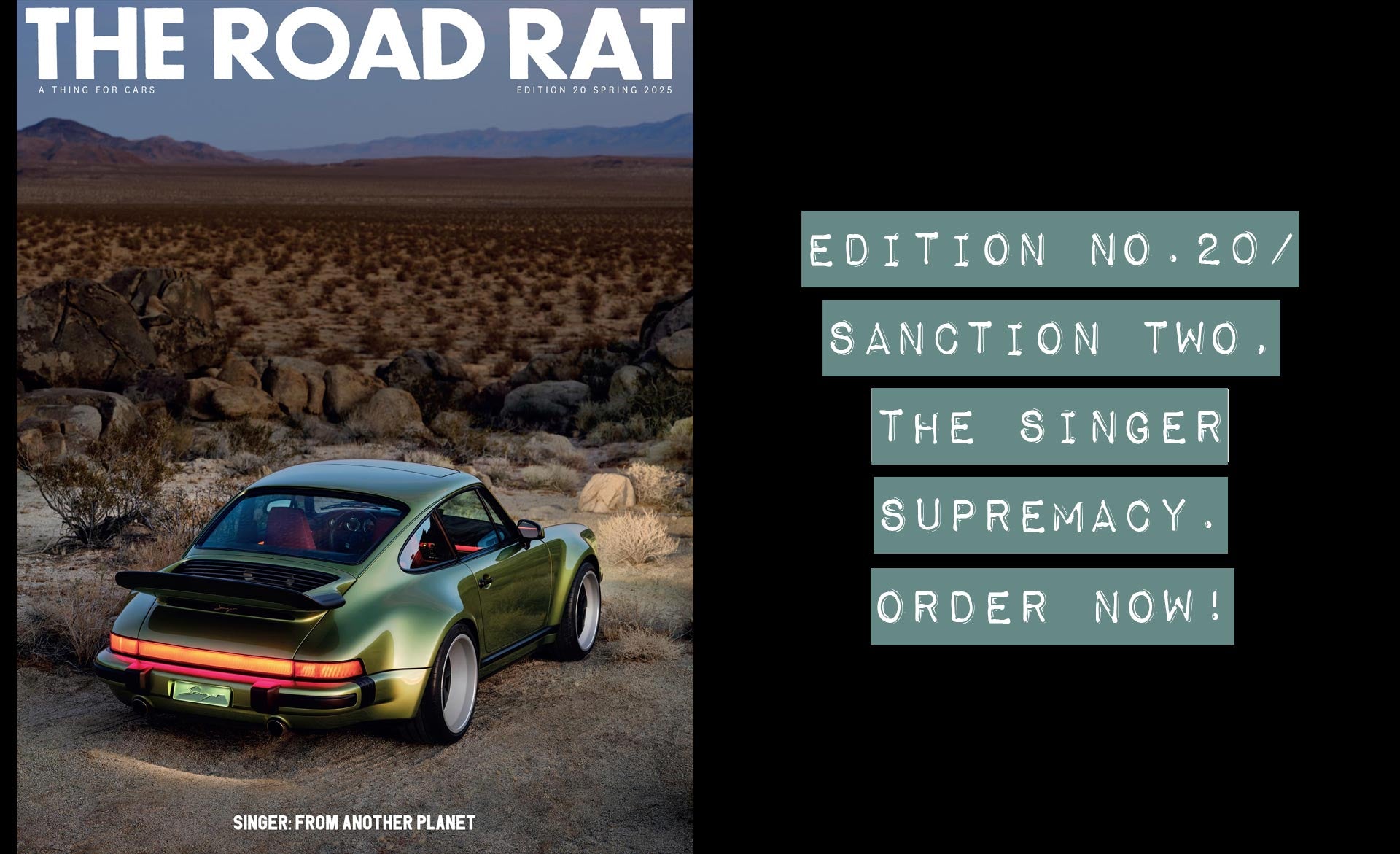 The Road Rat is a new kind of car magazine. Not overly obsessed with the detail of old cars nor over-impressed with the performance of new; the Road Rat instead firmly believes there are good stories — real stories, stories to consume with relish — in both old and new and in racing too. But above all The Road Rat believes in the glory of magazines; lush, beautiful, valuable, collectable and exquisitely crafted magazines.